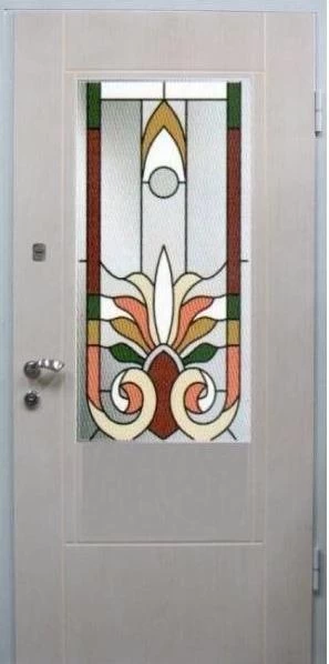 Входные двери в Татарске с применением декора витражом изготавливаются из стального профиля, придающего прочность конструкции, а сама витражная вставка обладает высокой взломостойкостью, поскольку для витражных композиций используется специальное стекло, обработанное особым образом. Усилить надежность витражного элемента можно с помощью использования декоративных кованных решеток.