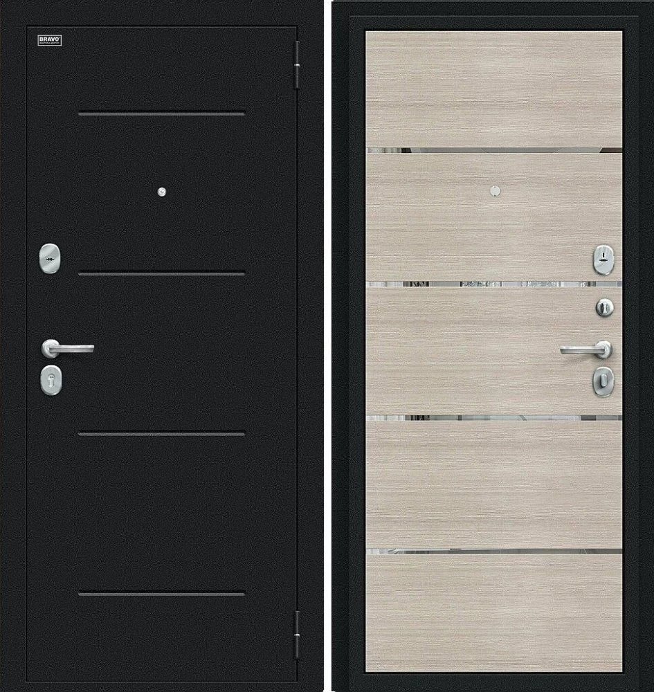 Надежная входная Дверь Браво Лайн Букле черное/Cappuccino Veralinga премиум класса по цене 30 357 руб. Большая толщина стали защитит от проникновения в ваш дом, квартиру или коттедж. Используется очень качественная фурнитура: замки, цилиндры, ручки, защелки. Покрытие и отделка двери изготовлено под внимательным контролем производителя. Дверь имеет долгий срок службы и гарантию.