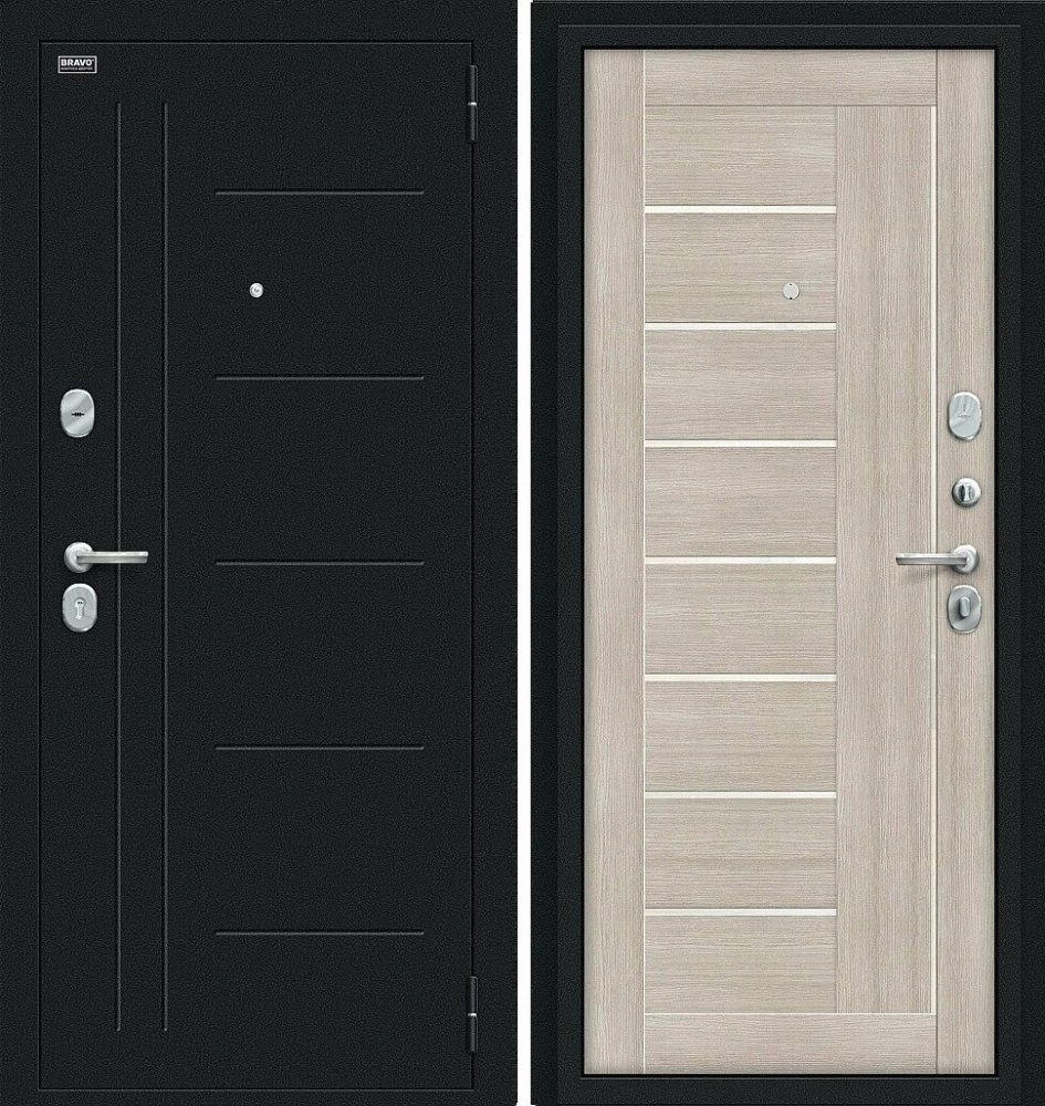 Надежная входная Дверь Браво Проф Букле черное/Cappuccino Veralinga премиум класса по цене 33 237 руб. Большая толщина стали защитит от проникновения в ваш дом, квартиру или коттедж. Используется очень качественная фурнитура: замки, цилиндры, ручки, защелки. Покрытие и отделка двери изготовлено под внимательным контролем производителя. Дверь имеет долгий срок службы и гарантию.