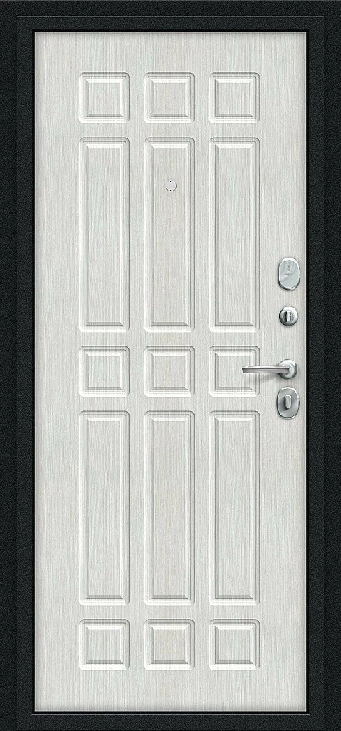 Надежная входная Входная дверь Мило Букле черное/Bianco Veralinga BR4301 премиум класса по цене 30 509 руб. Большая толщина стали защитит от проникновения в ваш дом, квартиру или коттедж. Используется очень качественная фурнитура: замки, цилиндры, ручки, защелки. Покрытие и отделка двери изготовлено под внимательным контролем производителя. Дверь имеет долгий срок службы и гарантию.